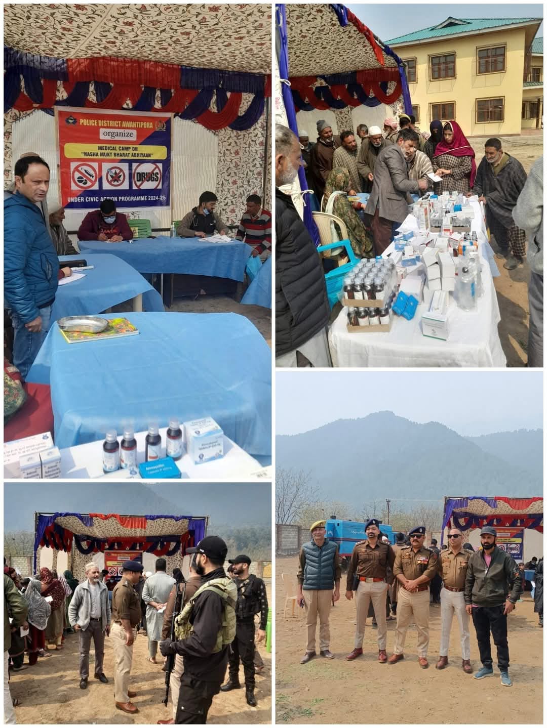 As part of “Nasha Mukti Bharat Abhyan” under Civic Action Programme (CAP) 2024-25, Police Awantipora organized a Medical Camp on drug abuse at Village Satoora Tral. The event aimed to provide general awareness, counselling, and support to individuals struggling with addiction.