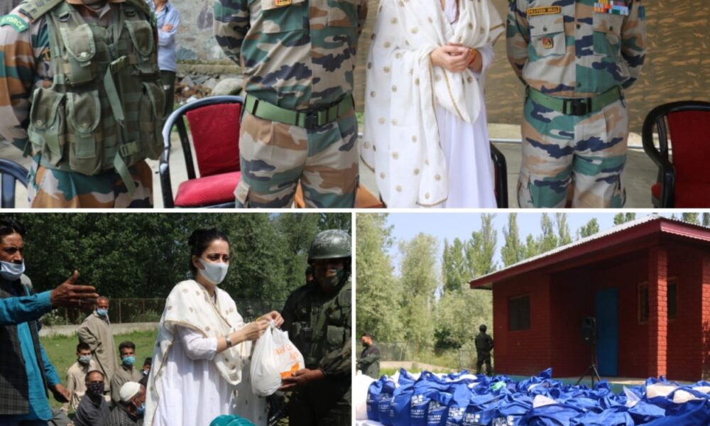 Press trust of Kashmir | Pattan : In pursuance of Indian Army’s resolve to strike a chord with the local populace ,Khanpeth Army Camp of 29 Rashtriya Rifles in conjunction with Rouble Nagi art foundation carried out ration distribution to the needy.