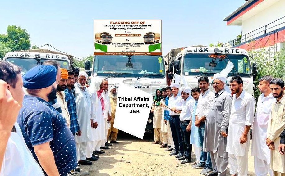 Press Trust of Kashmir | JAMMU: In a significant development the Tribal Affairs Department today flagged off a fleet of 40 trucks for transportation livestock and families of migratory tribal population from various districts to the highland pastures.