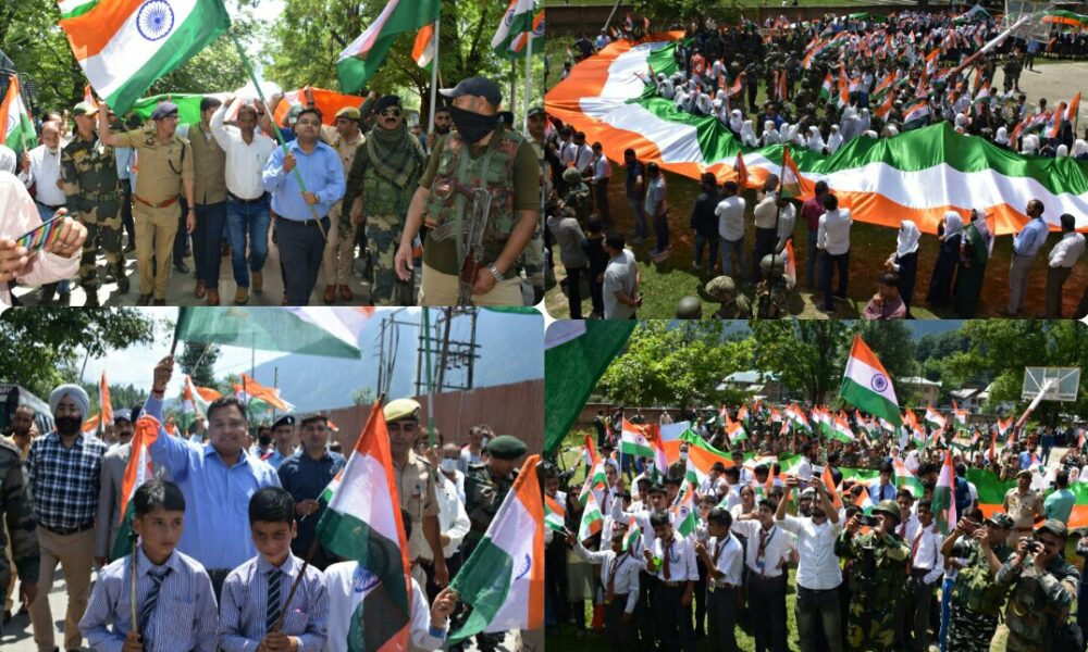 Commencing from Main Market Pahalgam, the rally concluded at GHSS Pahalgam. The rally saw the students among others carrying 150 metre long Tiranga across Pahalgam amidst chants of Ghar Ghar Tiranga, Har Ghar Tiranga.