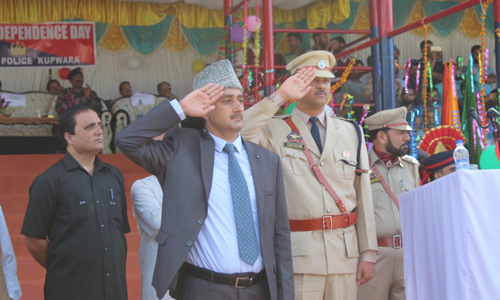 Kupwara, Aug 15: District Development Commissioner Kupwara Khalid Jahangir hoisted the national flag, inspected the parade and took salute at combined march past presented by the contingents of JKP, JKAP, CRPF, Home Guards, FPF ,SPOs and Schools