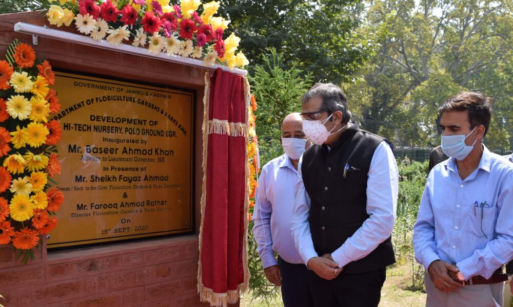 SRINAGAR, SPETMEBER 15 (PTK) Advisor to Lieutenant Governor Baseer Ahmad Khan today inaugurated a Hi-Tech Floriculture Nursery and sale center at Pologround Srinagar.