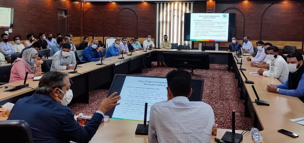 Director JKEDI, Mehmood Ahmad Shah, gave a detailed presentation on the achievements and issues faced by the Institute in terms of developing the entrepreneurial culture in the Union Territory.