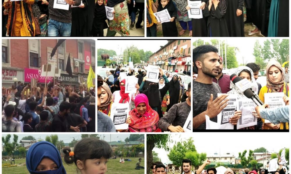 Srinagar: All JK Youth Society held a peaceful March in lal chowk Srinagar against the rape of 3 year old kid Aiman Zehra in Bandipora.
