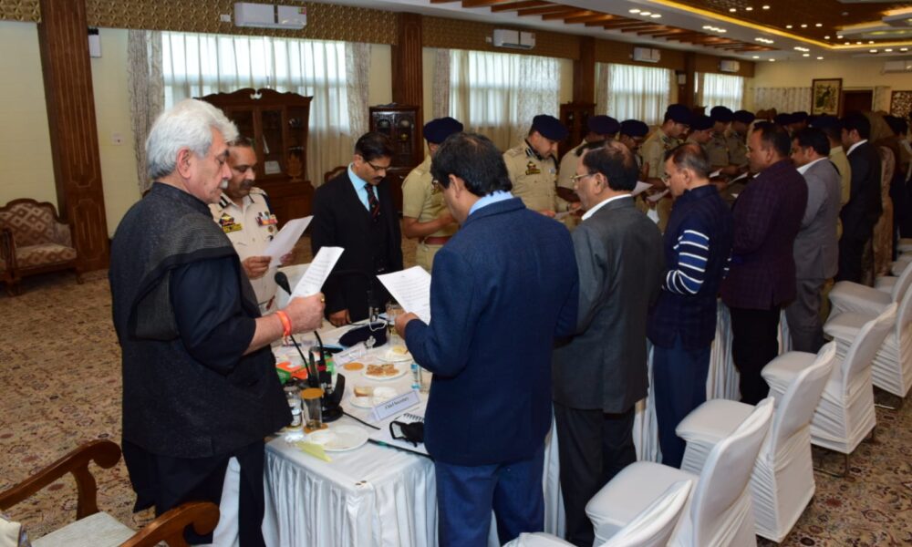 SRINAGAR, MAY 21 (PTK) Lieutenant Governor, Manoj Sinha today administered the Anti-Terrorism Pledge to the senior officials, DCs and SSPs here at Raj Bhavan to mark the observance of Anti-Terrorism Day.