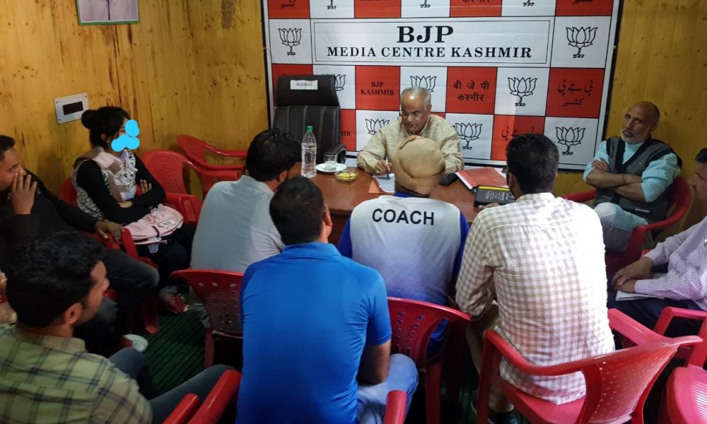 SRINAGAR, (PTK): BharatiyaJanata Party (BJP), State General Secretary (Org) Ashok Koul today met the delegations of J&K Unemployed Physical Education and Sports Education, All NIS Certified Community Coaches, Contractual Teachers association from different Districts of Kashmir etc , and gave patient hearing to their grievances at party office, Jawahar Nagar Srinagar here. The delegations put their grievances and issues which they are facing.