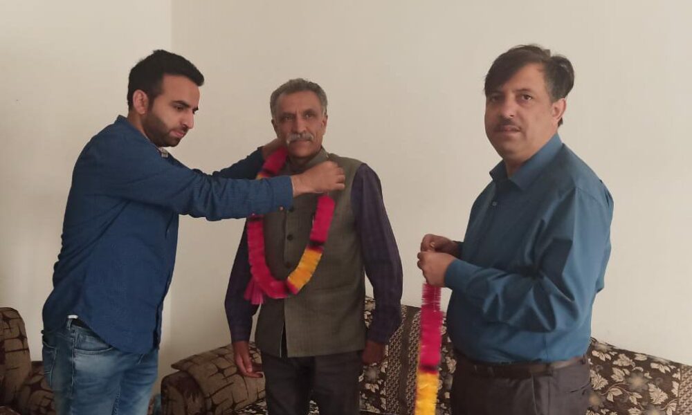 Senior PDP leader and Ex MLA Wachi, Aijaz Ahmad Mir and member District Development Council Shopian Muzzafar Ahmad Wagay welcomed Pandita into the Party fold. (PTK)