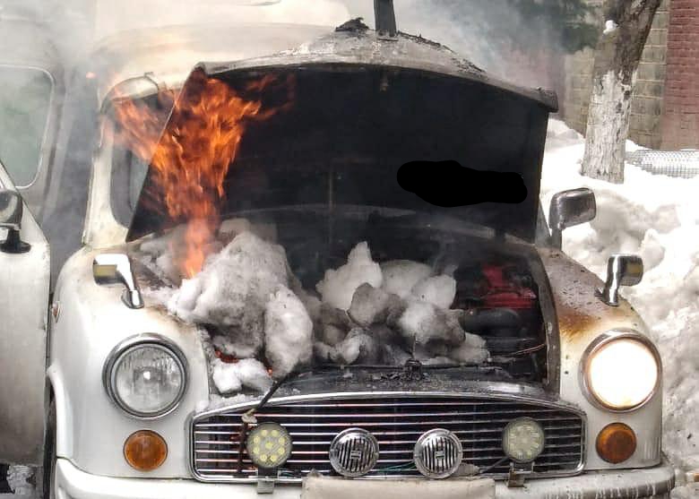 Officials said that a vehicle bearing registration number AP23AA4862 parked at Gupkar road near Hotel Lalit mysteriously caught fire resulting in partial damage to the vehicle.