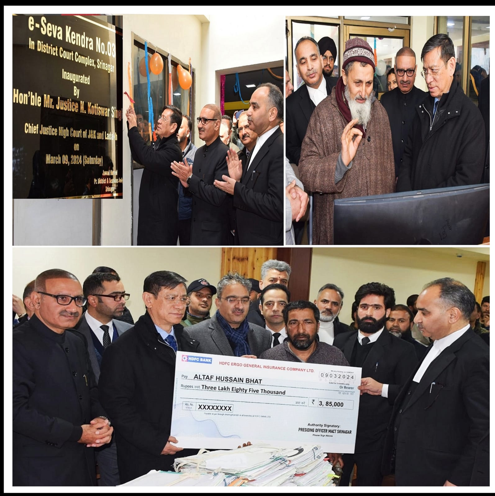 SRINAGAR : The first National Lok Adalat, E-seva Kendra number 02 and 03, and the Single Window system for issuance of certified copies, was inaugurated by Justice N. Kotiswar Singh, Chief Justice of the High Court of Jammu & Kashmir and Ladakh, (Patron-in-Chief of the J&K Legal Services Authority) in presence of Justice Javed Iqbal Wani, Judge of High Court of Jammu & Kashmir.