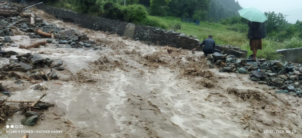 SRINAGAR (PTK) : Flash flood triggered by a cloudburst created panic in Gujar Pari Prang area of Central kashmir’s Ganderbal district.