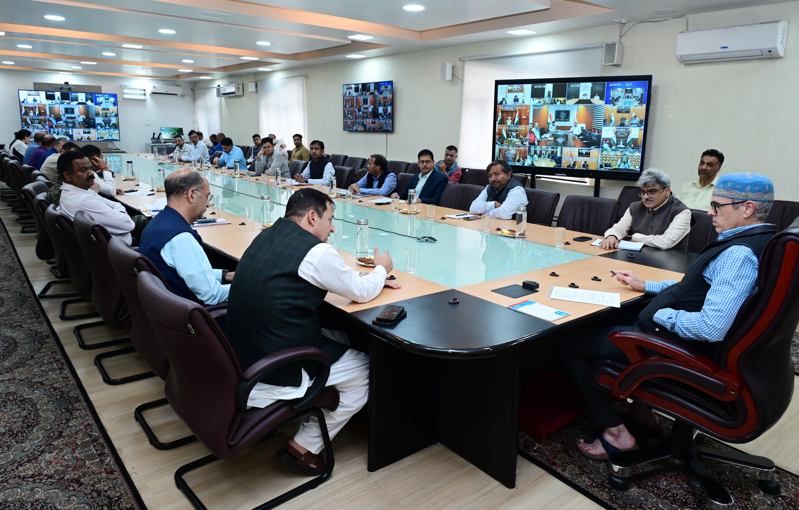 The meeting was attended by Minister for Agriculture, Javid Ahmed Dar; Minister for Food, Civil Supplies & Consumer Affairs and Transport, Satish Sharma; Chief Secretary Atal Dulloo; Additional Chief Secretary Jal Shakti, Shaleen Kabra; Additional Chief Secretary to the Chief Minister, Dheeraj Gupta; Principal Secretary Home and PWD; Secretary Education; Divisional Commissioners of Jammu and Kashmir; all Deputy Commissioners; MD KPDCL; Chief Engineers of Irrigation & Flood Control, PHE, Project SAMPARK and BEACON; officers and representatives of NHAI, NHIDCL, and the Meteorological Centre J&K, among others. Outstation officers attended the meeting through virtual mode.