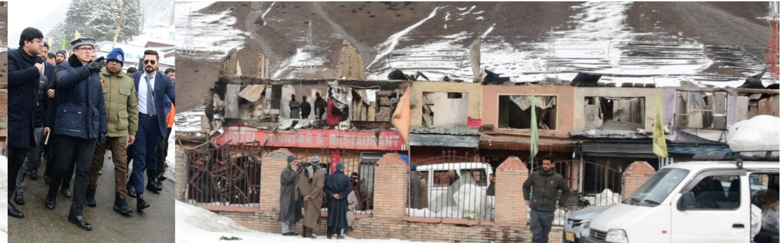 SONAMARG (GANDERBAL), FEBRUARY 11 (PTK): In the wake of the devastating fire incident that struck the old market Sonamarg recently, Chief Minister Omar Abdullah visited the affected site to take stock of the damage and express solidarity with the affected shopkeepers.