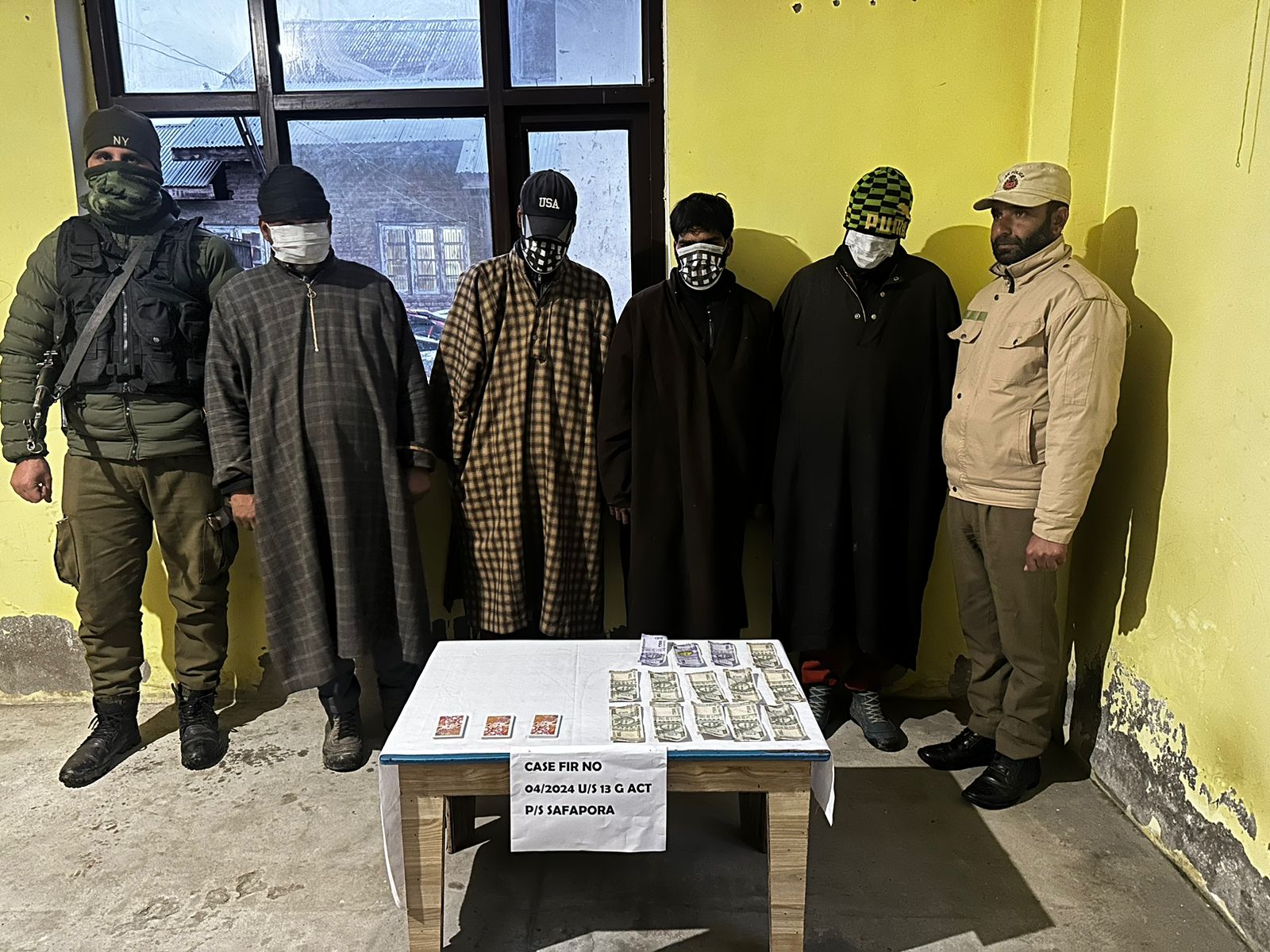 According to officials speaking to the News Agency Press Trust of Kashmir, the operation targeted a group of gamblers at the link road Barkati Mohalla Safapora-Hakbara. During the raid, stake money amounting to Rs. 5800/- along with a deck of playing cards were recovered and seized from the possession of the accused.