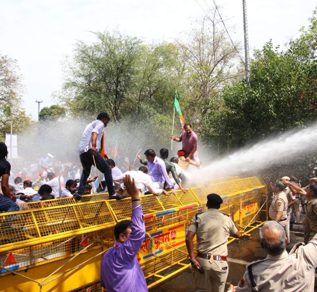 DELHI: Tensions escalated in the capital today as Delhi Police resorted to the use of water cannons to disperse Bharatiya Janata Party (BJP) protesters demanding the resignation of Delhi Chief Minister Arvind Kejriwal. The protest was organized in response to Kejriwal’s recent arrest in connection with the Delhi liquor policy scam case.