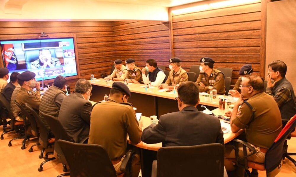 Spl DG CID J&K Shri R R Swain, ADGP Armed J&K Shri SJM Gillani, IGP Kashmir Zone Shri Vijay Kumar, DIG CKR Shri Sujit Kumar, SSP Srinagar Sandeep Chaudhary, Commandants of Kashmir based Armed/IRP battalions attended the meeting at PCR and all other district SSsP of Kashmir Zone attended the meeting through video conferencing.