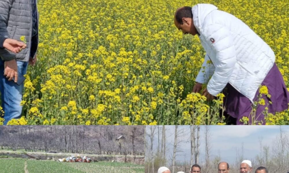 PULWAMA, MARCH 13 (PTK: Continuing the Departments endeavor to realize the Prime Minister’s goal of doubling the income of farmers by 2022, Director Agriculture Kashmir Chowdhary Mohammad Iqbal today visited district Pulwama and inspected various plots laid during the Rabi 2021-22 under National Mission on Edible Oils.