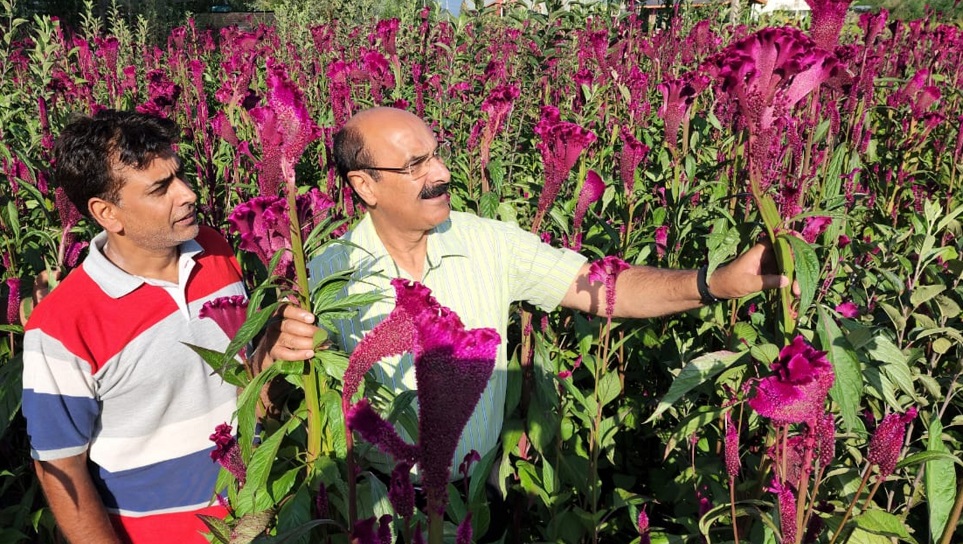 Earlier, the Director visited cockscomb farms of a progressive farmer of Harwan. Talking to the concerned farmer, the Director said that they have already introduced J&K’s agriculture crops and commodities at national and international level and now are working on the value addition of different crops and this process is on.