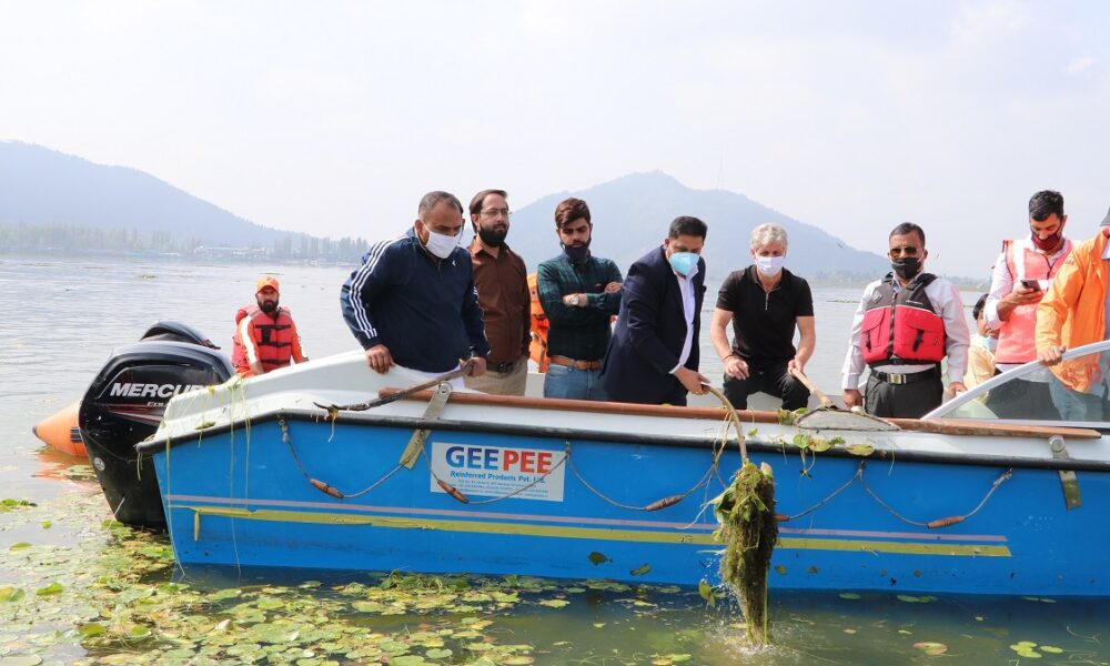 Div com conducts extensive tour of Dal Lake, Participates in deweeding drive