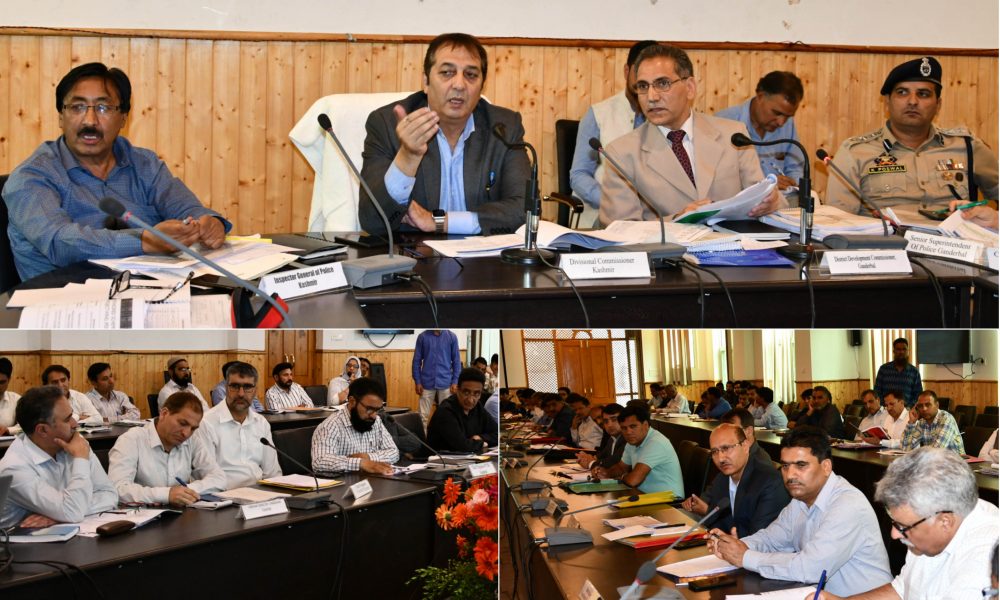 GANDERBAL, JUNE 03: Divisional Commissioner Kashmir Baseer Ahmad Khan Monday chaired a meeting to take the first-hand appraisal on the follow-up action on the directions passed by Chief Secretary recently regarding various developmental projects in Bandipora and Ganderbal districts.