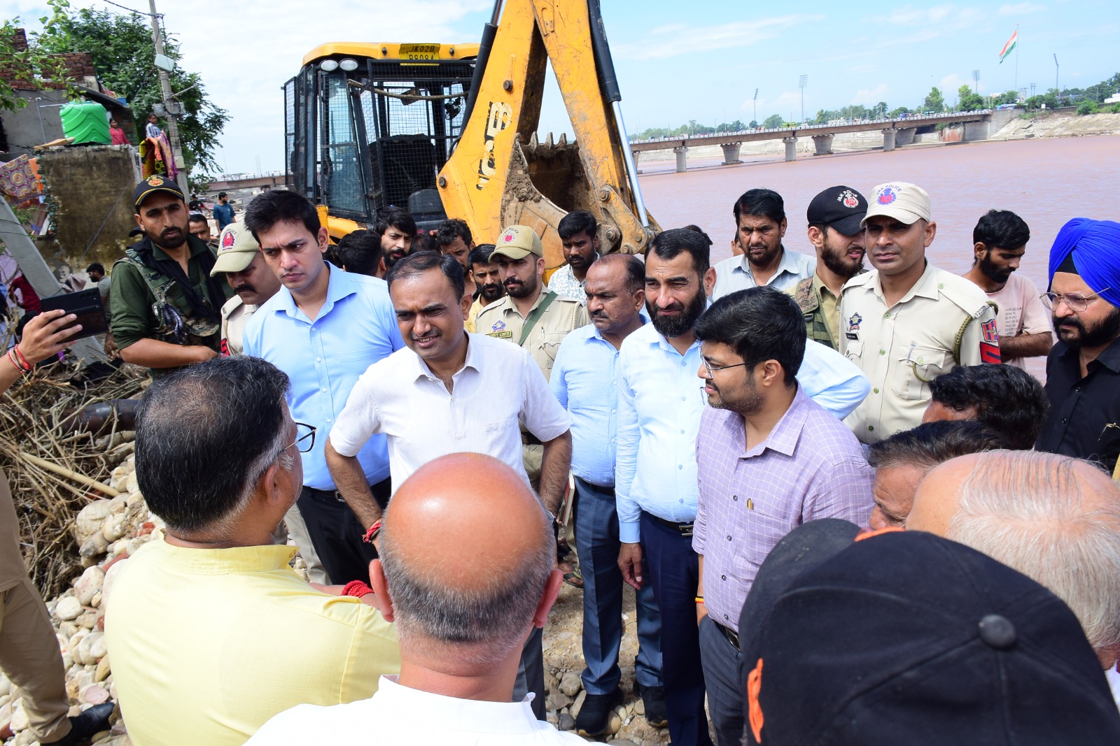 The Divisional Commissioner, accompanied by Managing Director JPDCL, Commissioner JMC, Deputy Commissioner Jammu, Chief Engineers of PWD, Jal Shakti, PDD and other officials, visited different affected areas and essential infrastructure installation that suffered damages due to the heavy rains and floods.