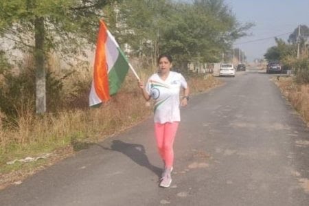 Press Trust of Kashmir | JAMMU : Advisor to Lieutenant Governor, Farooq Khan, today complimented Seema Kharyal, an International sports personality from Jammu and Kashmir Labour Department, for creating 3 world records in International Book of Records including 100km, 26km and 23km running while carrying Indian National Flag.