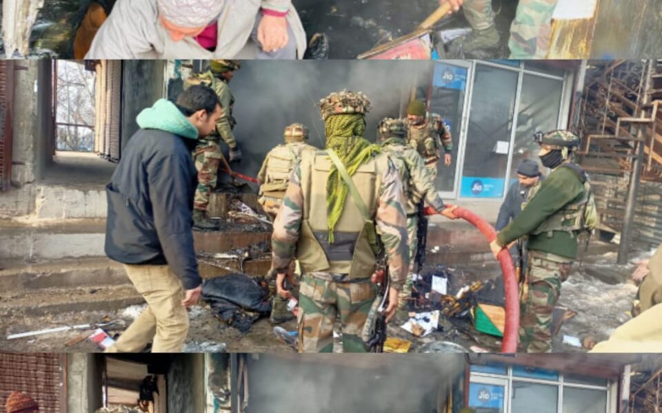 Ganderbal,Jan,04 (PTK):shop belonging to Adil ahmad baba S/o mehraaj ud din baba near SBI bank at Kangan market on Srinagar-Leh highway, damaging it completely.