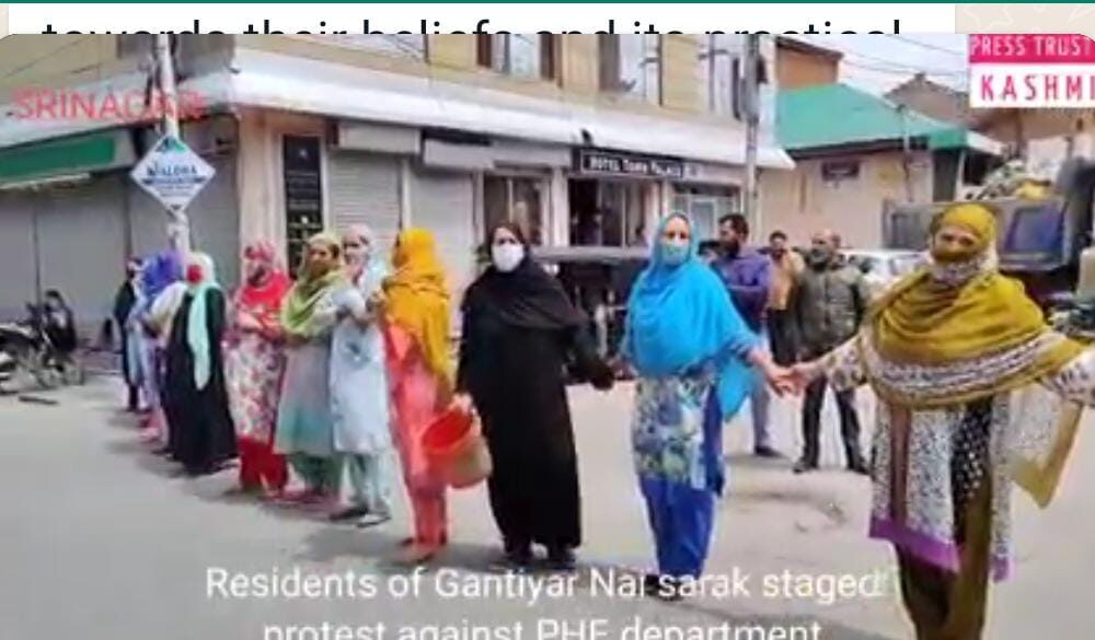 A group of people assembled and held a strong protest demonstration against PDD and Jal Shakti Department Srinagar.