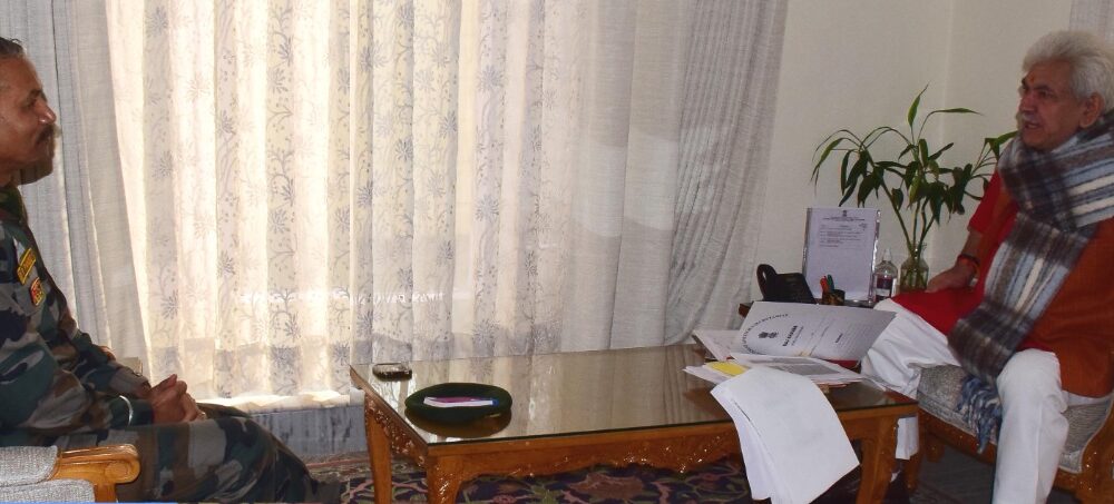 JAMMU, DECEMBER 21 (PTK): General Officer Commanding (GOC) 15 Corps, Lt General, D.P Pandey today called on Lieutenant Governor Manoj Sinha at Raj Bhavan.