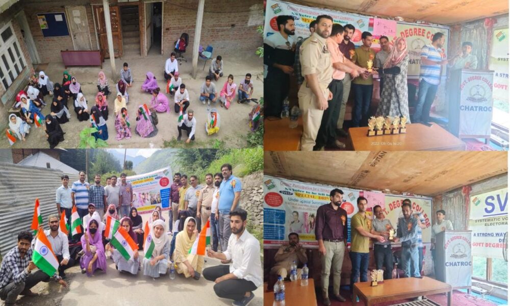 PRESS TRUST OF KASHMIR KISHTWAR, AUGUST 04: As a part of Azadi Ka Amrut Mahotsav, Department of Rural Development & Panchayati Raj, in collaboration with Government Degree College Chatroo, today conducted “Har Ghar Tiranga” campaign and awareness on SVEEP & “Har Ghar Khada” here on the College Campus.