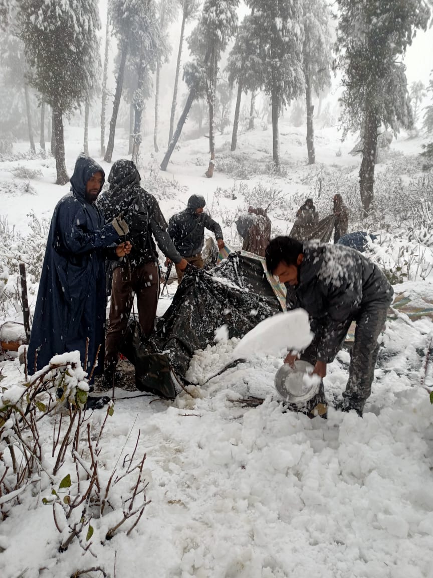 Police Post Pakherpora received a distress call for assistance from the nomads putting up in tents at higher reaches of Nagbal Yousmarg where 04 families had got stuck due to heavy snowfall and imminent apprehensions of snow avalanche.