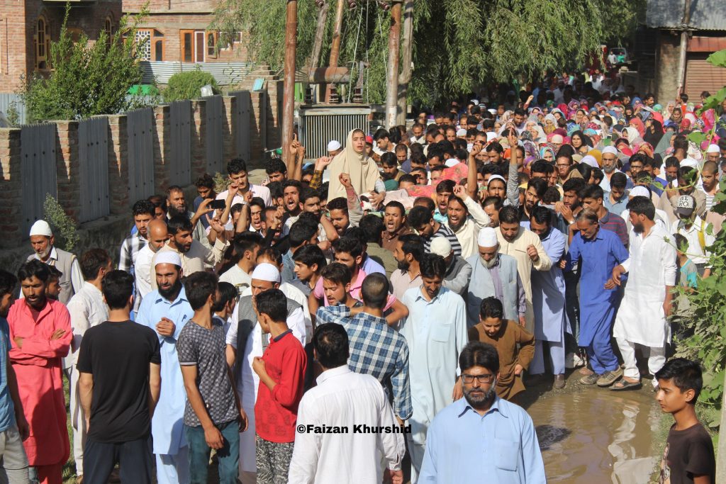 Hurriyat leader Hakeem ur Rehman Sultani liad to rest amid Pro Pakistani and Anti India slogans at his native village Bomai Sopore.
