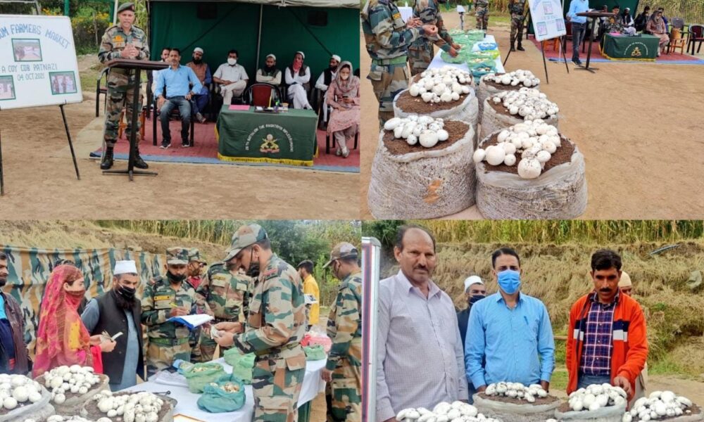 PRESS TRUST Of KASHMIR | KISHTWAR: Button Mushroom exhibition cum Sale market (Bazaar) was today organized by the Indian Army in collaboration with the Department of Agriculture, here at Patnazi Bunjwah.