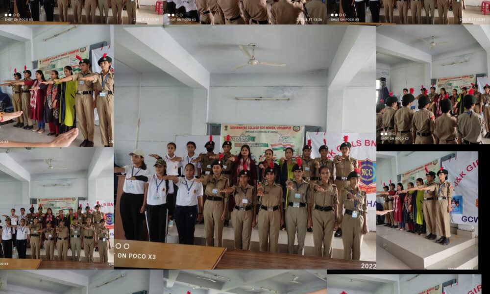 The First J&K Girls Battalion NCC, Srinagar, GCW Udhampur, under the guidance of the Principal of the college Dr. Monika Sharma, organized series of events in connection with Har Ghar Jhanda programme during the celebration of Independence Week as a part of Azadi Ka Amrit Mahotsav, from 11th to 17th August, 2022.