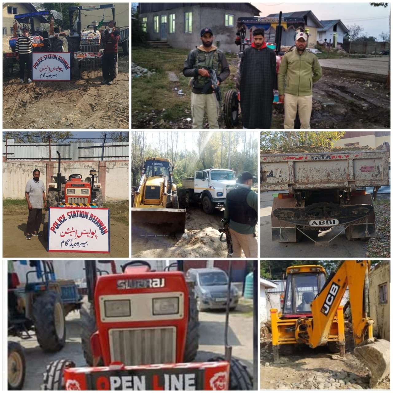 During the first fortnight of October 2025, police teams under the supervision of senior officers registered 12 FIRs, arrested 15 persons, and seized 53 vehicles, including 29 tippers/dumpers, 21 tractors, 2 JCBs, and 1 L&T machine, from various areas such as Khansahib, Beerwah, Narbal, Magam, Hardupanzo, Budgam, Waterhail, and Chadoora. In coordination with the Department of Geology and Mining, fines amounting to several thousand rupees were imposed on the violators.