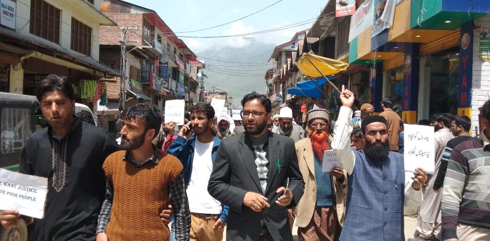 Bandipora, April 28 (PTK): JKPM leader Dr. Mustafa Khan along with other party activists held a strong protest in front of DC office Bandipora against poor health care facilities in district hospital Bandipora.