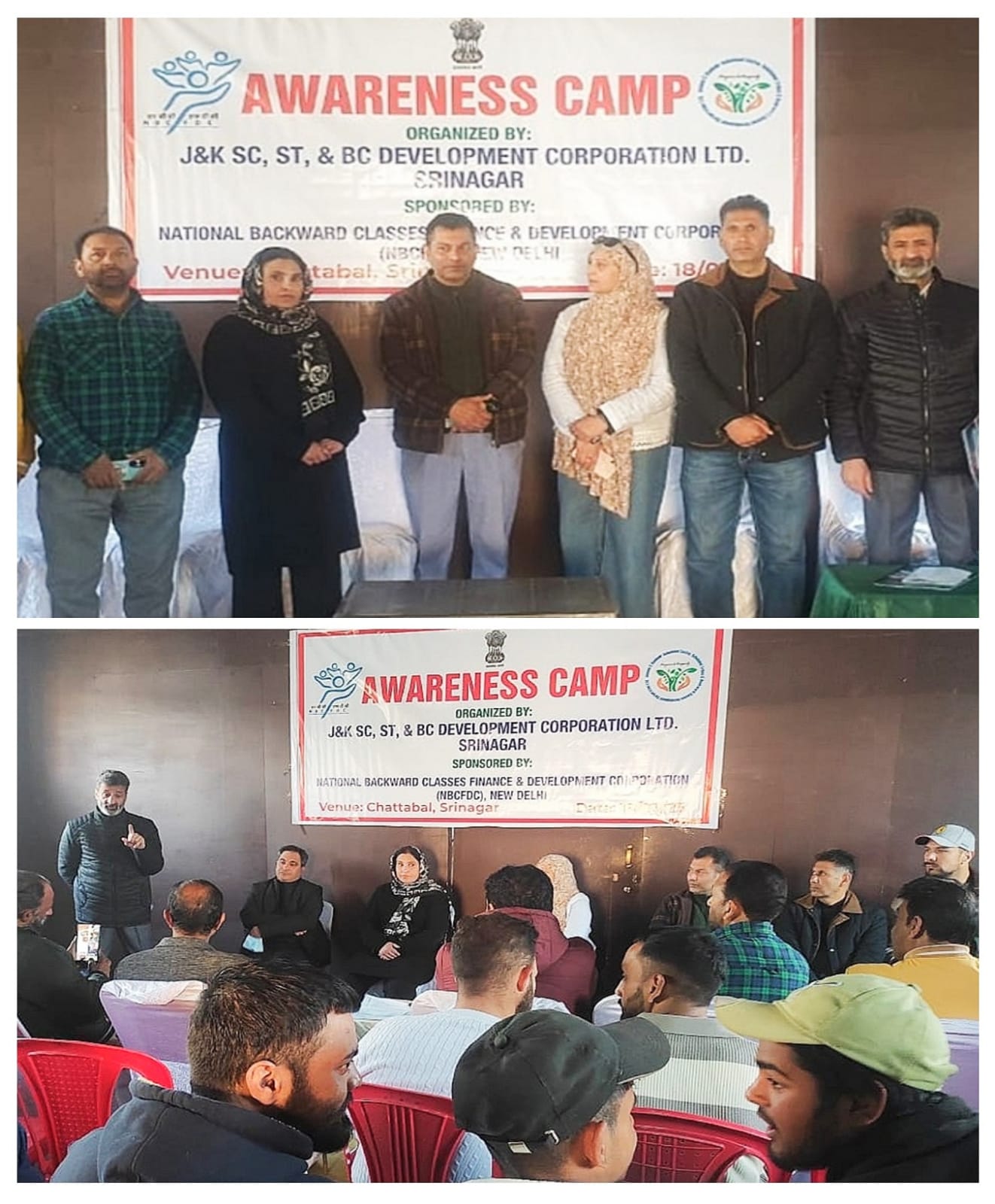 SRINAGAR, MARCH 18 (PTK): JK Scheduled Castes, Scheduled Tribes & Backward Classes Development Corporation Ltd., Srinagar, organized an Awareness Camp at Chattabal, Srinagar, on Tuesday in collaboration with the National Backward Classes Finance and Development Corporation, New Delhi.