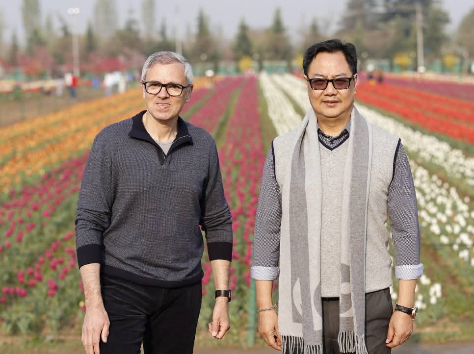 Kiren Rijiju and Omar Abdullah Share Vision for Peace During Joint Visit to Srinagar’s Tulip Garden