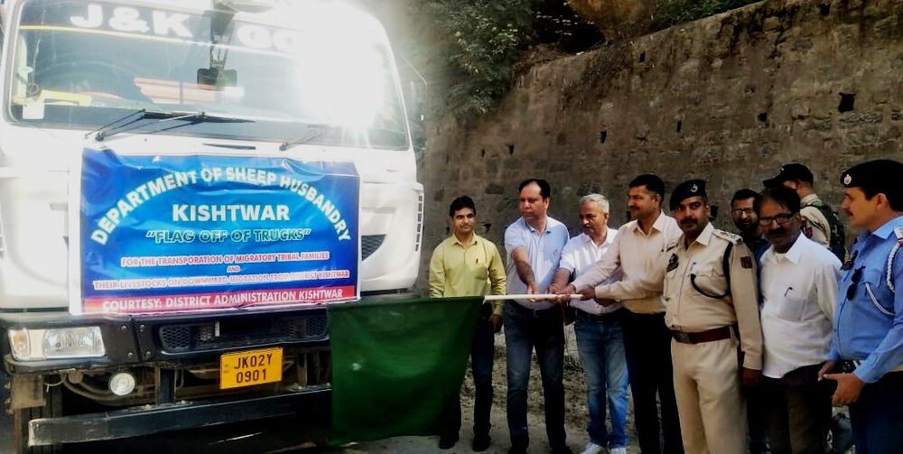 Additional District Development Commissioner, Sham Lal flagged off the first fleet of vehicles comprising 5 trucks and 1 passenger/LGV vehicles here from Warda, Hasti Morh Kishtwar towards Udhampur, carrying 273 livestock Including bovine animals and goats besides Highland Migratory tribal families.