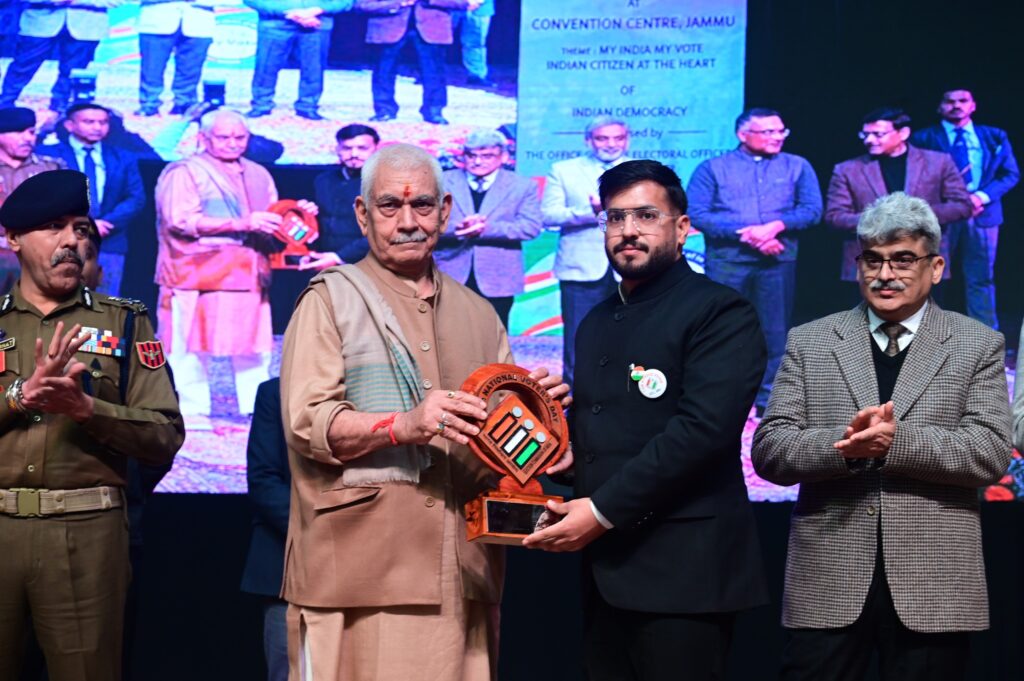 The award was conferred at a function held at the Convention Centre, Jammu, in recognition of exemplary election management, meticulous planning and effective implementation of the electoral process in District Rajouri.