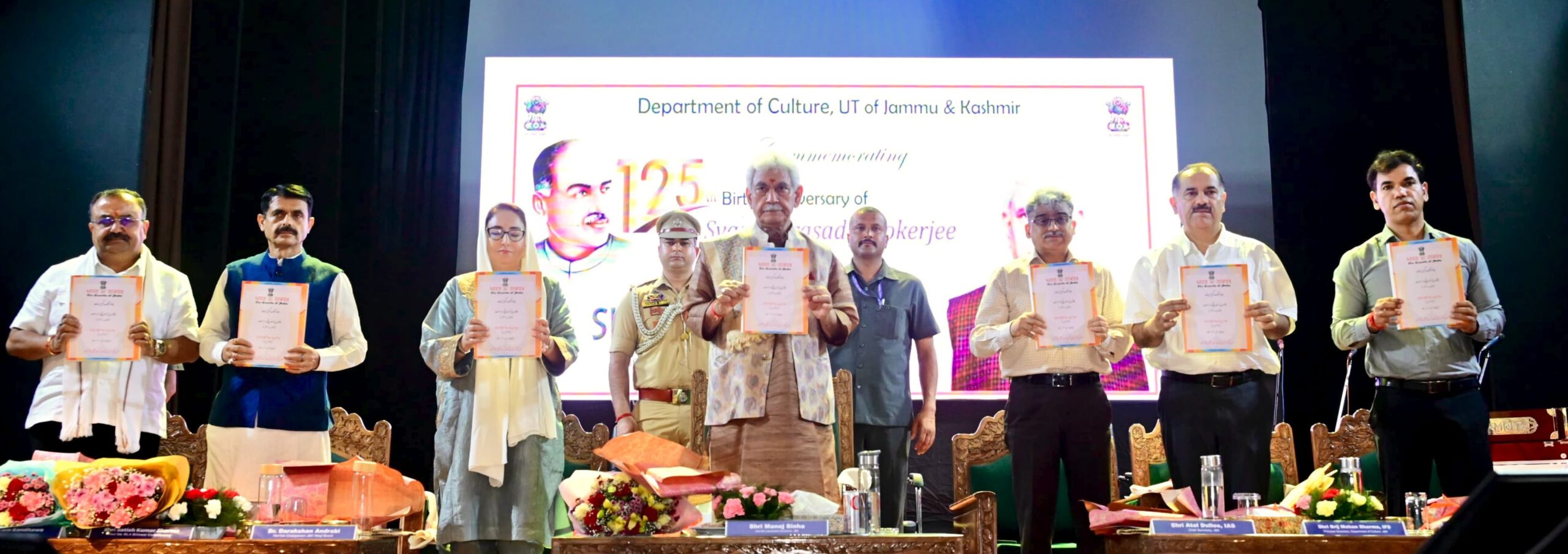 SRINAGAR, JULY 06(PTK): Lieutenant Governor Shri Manoj Sinha today attended the 125th Birth Anniversary celebration of Dr. Syama Prasad Mookerjee, at Tagore Hall, Srinagar.