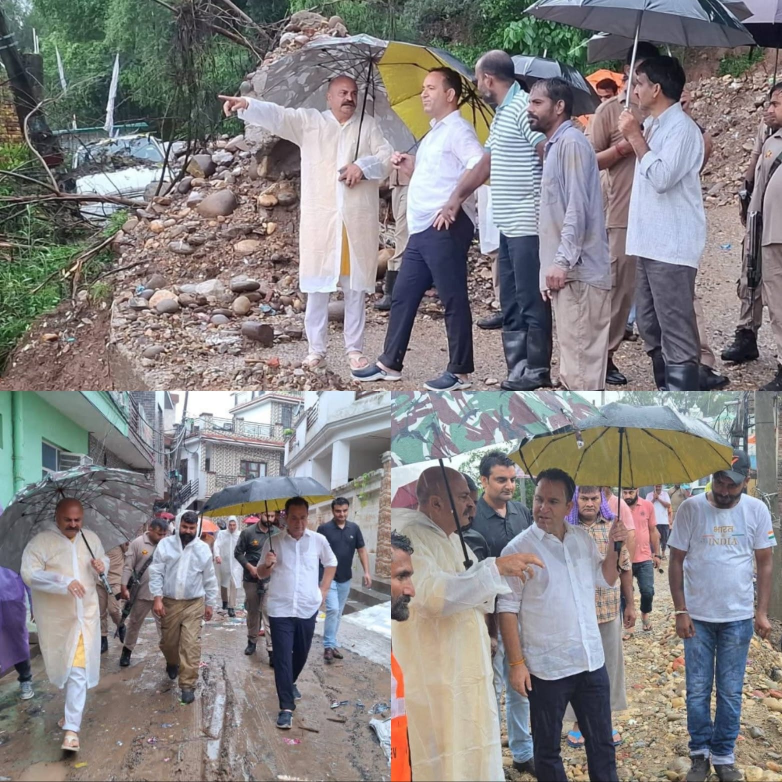 The leaders visited Rajiv Colony, Rajinder Nagar, Vikram Chowk, Goyal Lane, Old University Lane, Fisheries Mohalla, Rajiv Nagar Canal Road, Qasim Nagar, Goswami Mohalla, Jogi Gate, Peerkho and Roop Nagar areas among the hardest hit by the incessant rainfall and subsequent flooding.