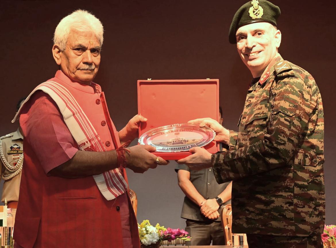 SRINAGAR, AUGUST 06: The Lieutenant Governor, Shri Manoj Sinha, today addressed the officers of Army, Navy and Airforce undergoing Higher Command Course at Army War College, Mhow. The officers and faculty members are on a visit to the Northern Front.