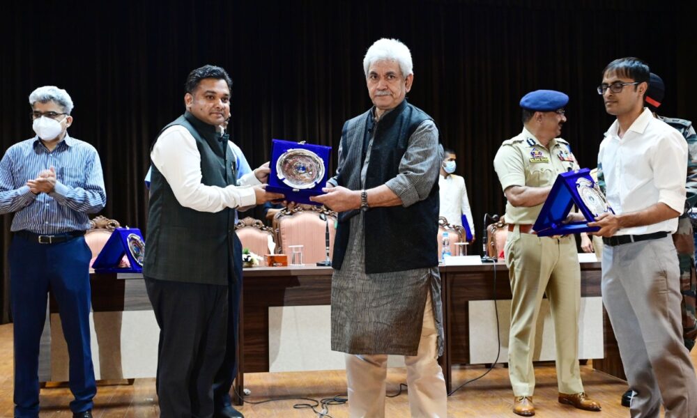 Lt Governor felicitates officers of Civil Administration, JKP, Army, CAPFs, NDRF, SDRF & SASB deployed for Amarnath Ji Yatra-2022