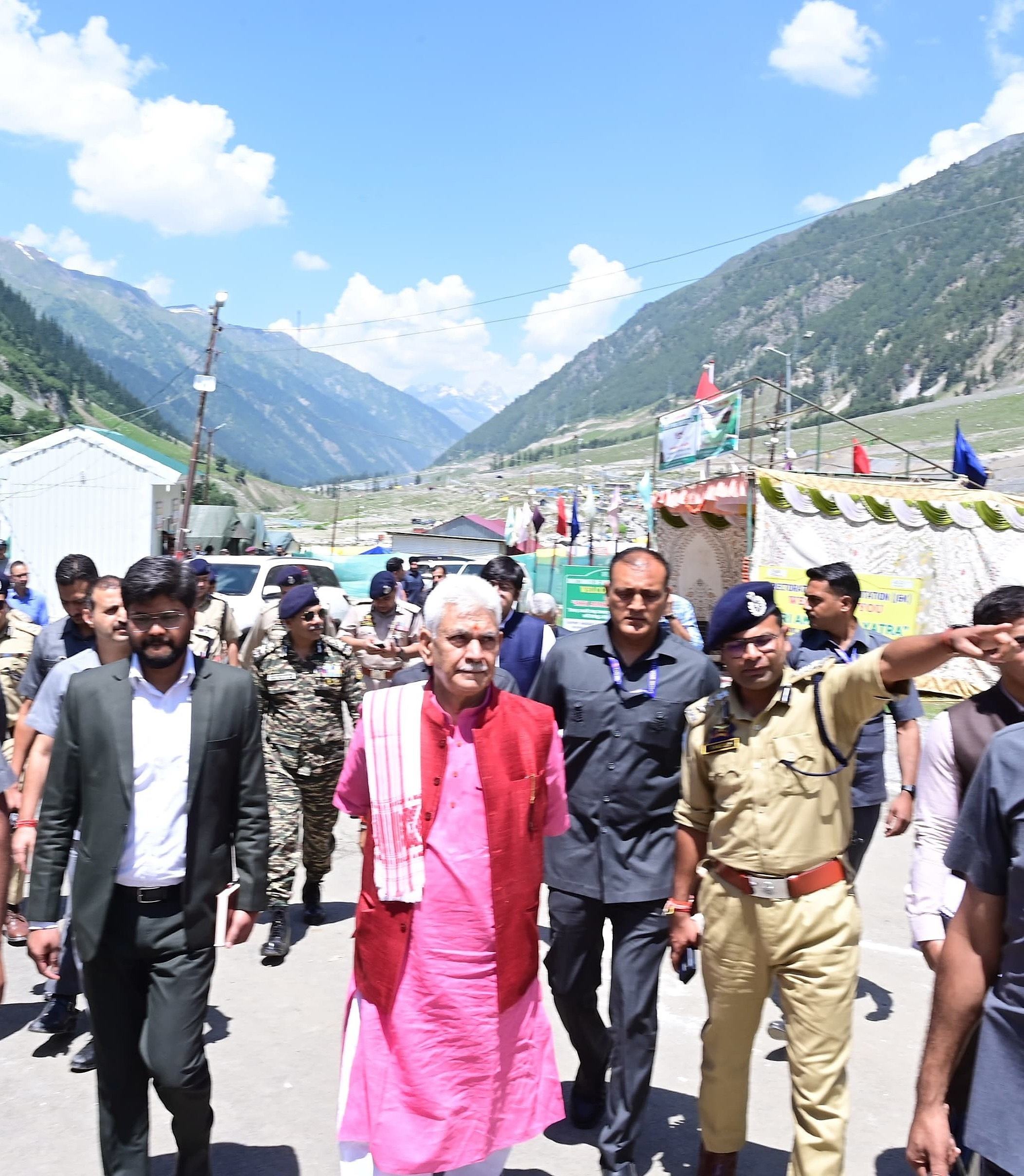 Sh Vijay Kumar, ADGP Kashmir; Dr Mandeep Kumar Bhandari, CEO, Shri Amarnath Ji Shrine Board; other senior officers of UT Administration, Shri Amarnath Ji Shrine Board, Police and Army also accompanied the Lt Governor.