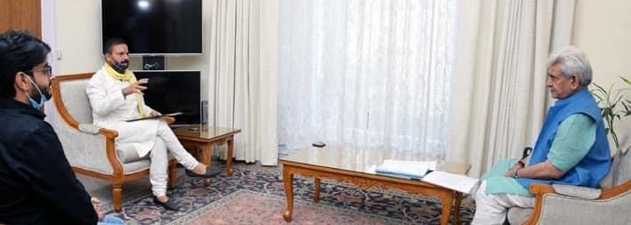 Press Trust of Kashmir | JAMMU/UDHAMPUR: Former MLA, Balwant Singh Mankotia called on Lieutenant Governor of the Union Territory of Jammu and Kashmir, Manoj Sinha and submitted a memorandum to him at Raj Bhawan, Jammu. Several social, political, developmental & unemployment issues were discussed.