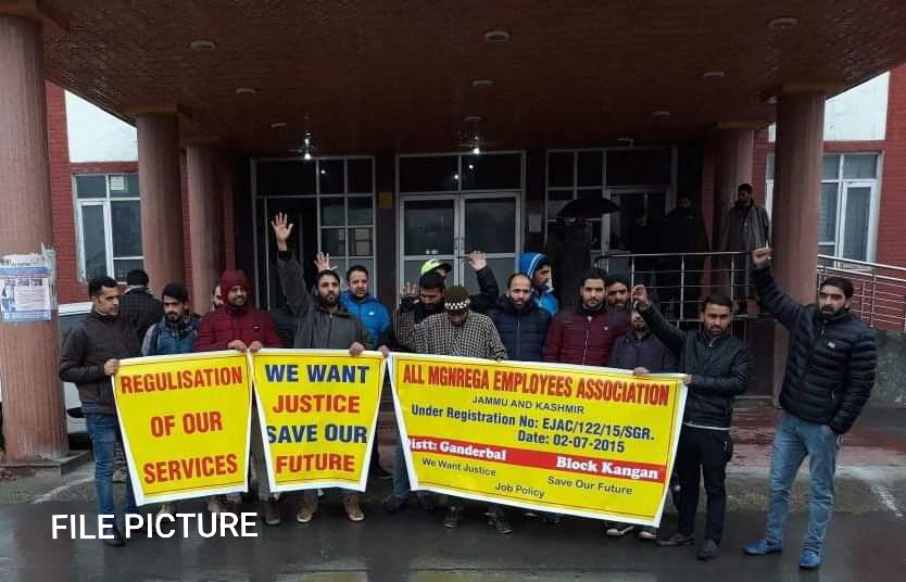 MGNREGA Association urged the J&K Govt and appeals to Lt Governor Chief Secretary to have sympathetic looks towards the genuine issue by issuing formal orders for regularization against available vacant vacancies in Rural Development Department.(PTK)