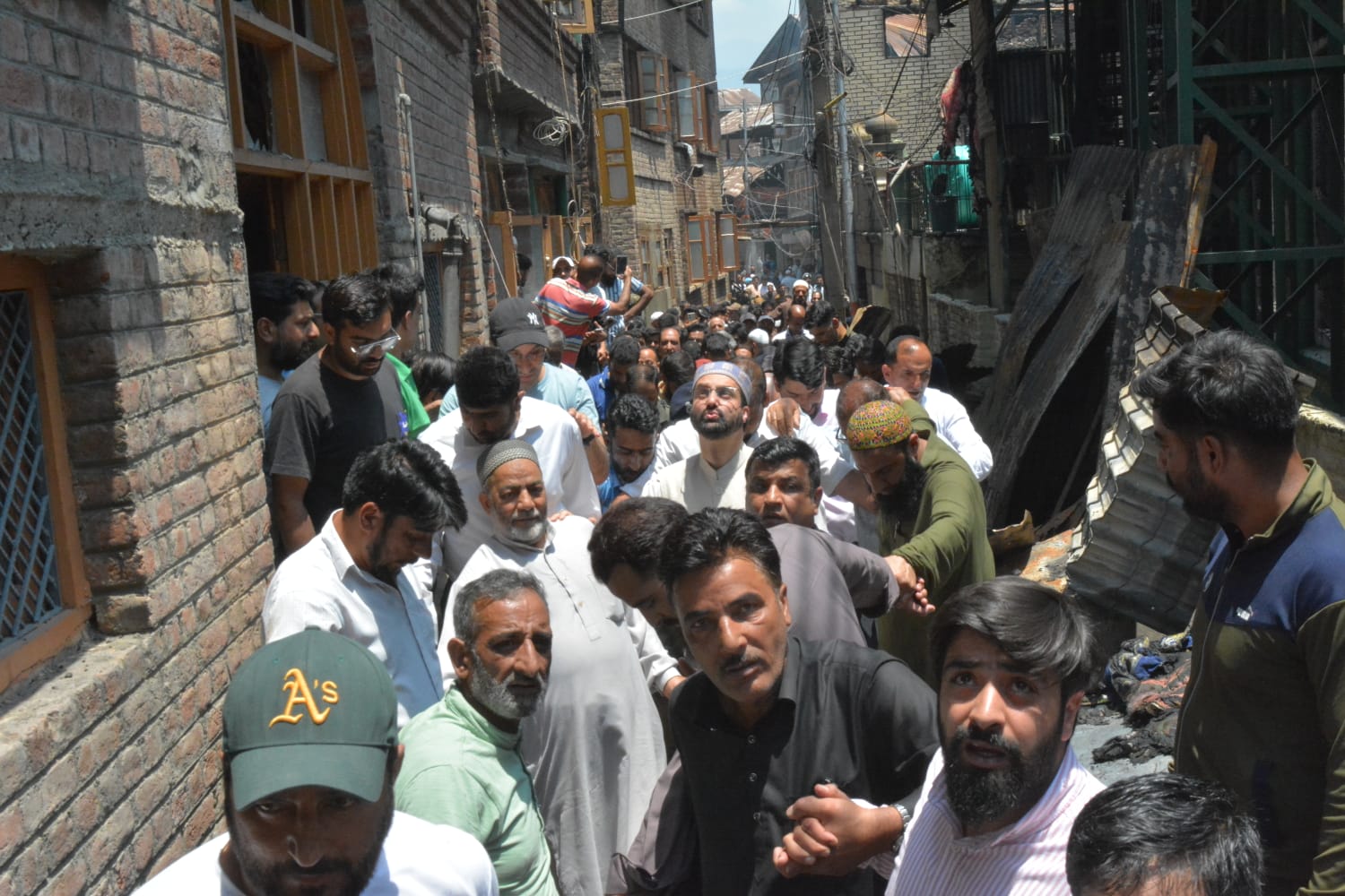 Mirwaiz visits Bohri Kadal fire victims, stresses rehabilitation of affected,restoration of Masjid
