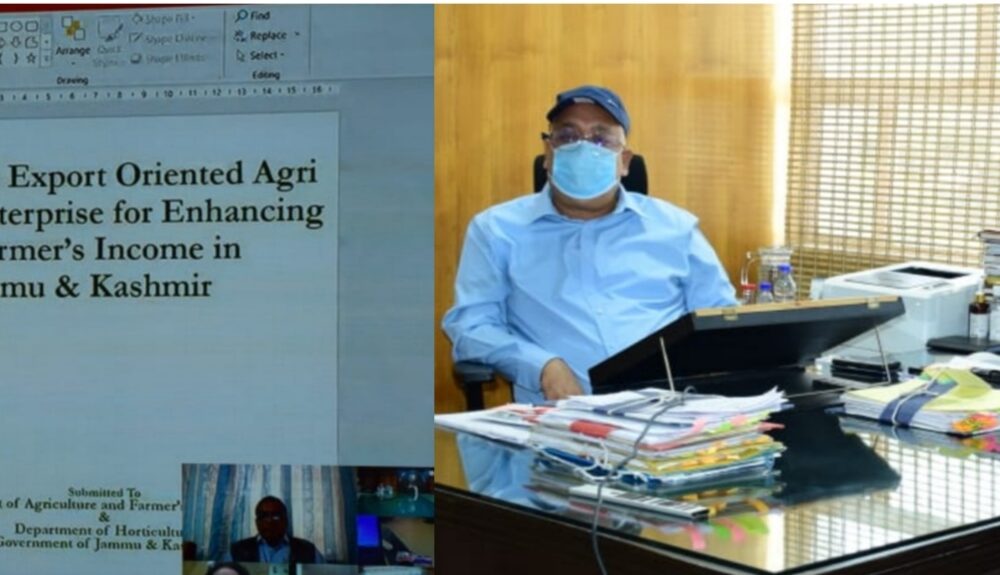 JAMMU, MAY 03(PTK): Principal Secretary, Agriculture Production and Farmers’ Welfare Department, Navin Kumar Choudhary today chaired a meeting to discuss the implementation of project; ‘Developing Export Oriented Agri & Horti- Enterprises for Enhancing Farmers’ Income in Pristine Himalayan Region of Jammu & Kashmir’ aimed to boost exports of agriculture and horticulture products of Jammu & Kashmir.