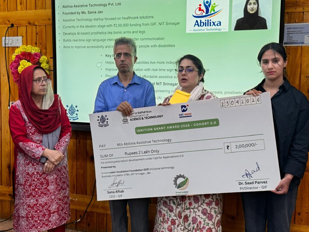 SRINAGAR, APRIL 26 (PTK): In a major push to strengthen the startup ecosystem in Jammu and Kashmir, the Greenovator Incubation Foundation (GIF) at National Institute of Technology Srinagar (NIT) awarded ignition grants to 10 emerging startups under Cohort 2.0 during the Ignition Grant Felicitation Ceremony 2026.