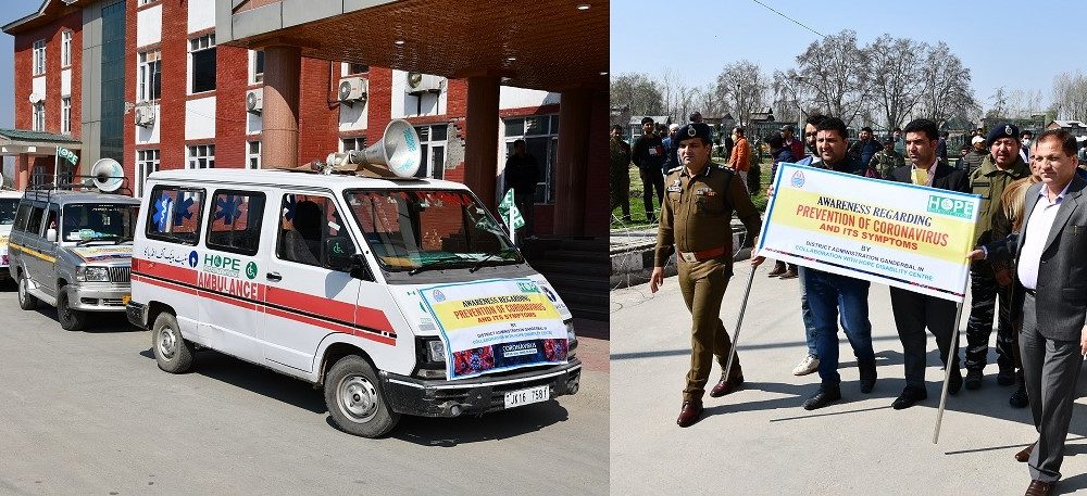 DC made these remarks while kick starting a 3-day door to door awareness campaign from Mini Secretariat Ganderbal in which 6 ambulances fitted with loud speakers and banners will generate awareness regarding Do’s and Don’ts to curb spread of COVID-19 in all blocks of the district.